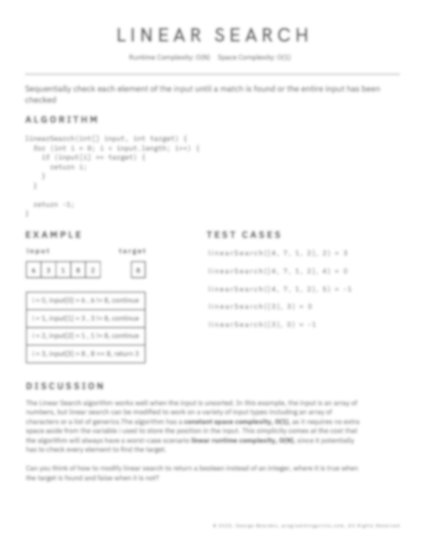 A High Quality PDF of the entire Linear Search Programming Print. You can use the digital copy, or print it to a standard 8.5" x 11" paper size.